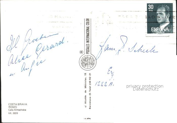 old postcard Roses Costa Brava Cala Almadraba postalisch gelaufen Erhaltung siehe scans