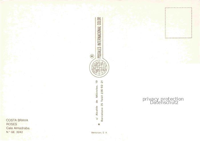 74086697 Roses Costa Brava ES Cala Almadraba Fliegeraufnahme postalisch nicht gelaufen Erhaltung siehe scans [WerneD78] KatCode: 11510