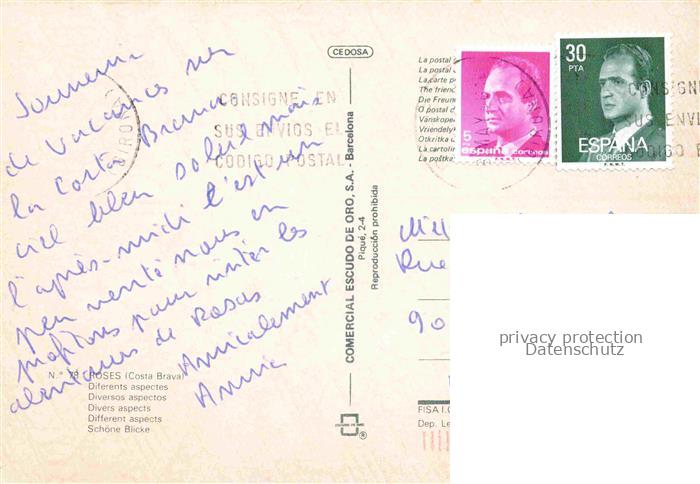 74034280 old postcard Roses Costa Brava ES Diversos aspects postalisch gelaufen Erhaltung siehe scans [FriedD77] KatCode: 11510