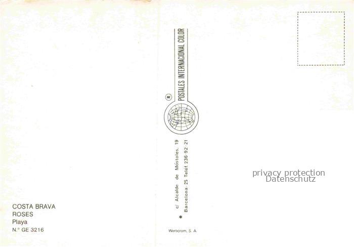 74137656 Roses Costa Brava ES Playa postalisch nicht gelaufen Erhaltung siehe scans [WerneD78] KatCode: 11510