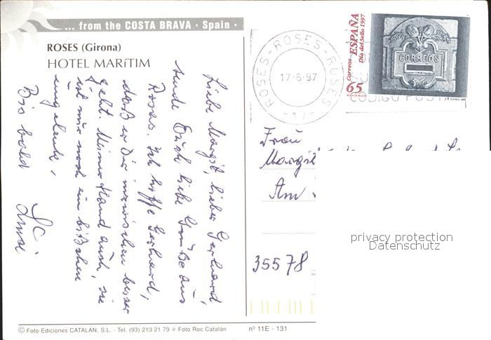 old postcard Roses Costa Brava Hotel Maritim postalisch gelaufen Erhaltung siehe scans