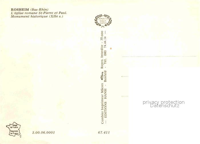 12917780 Rosheim Elsass Lothringen Eglise Romane St. Pierre et Paul postalisch nicht gelaufen Erhaltung siehe scans [LiesaD40] KatCode: 11170067367411