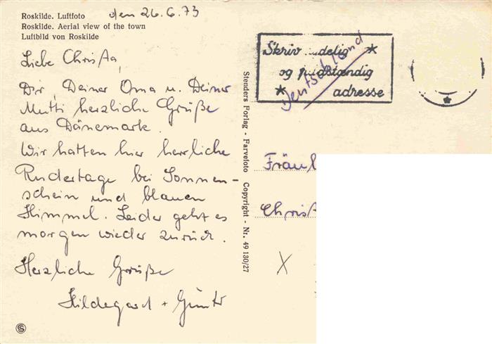 74014846 old postcard Roskilde DK Fliegeraufnahme postalisch gelaufen Erhaltung siehe scans [WerneD78] KatCode: 11100