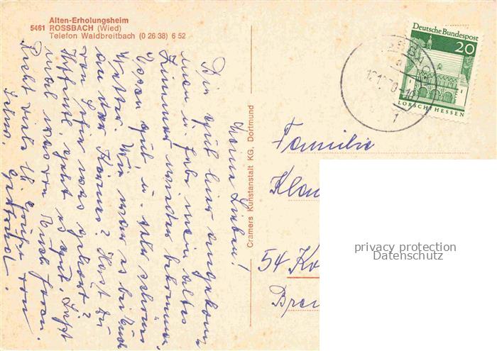 74050453 alte Postkarte Rossbach Wied Alten Erholungsheim postalisch gelaufen Erhaltung siehe scans [WerneD78] KatCode: 11110007138065