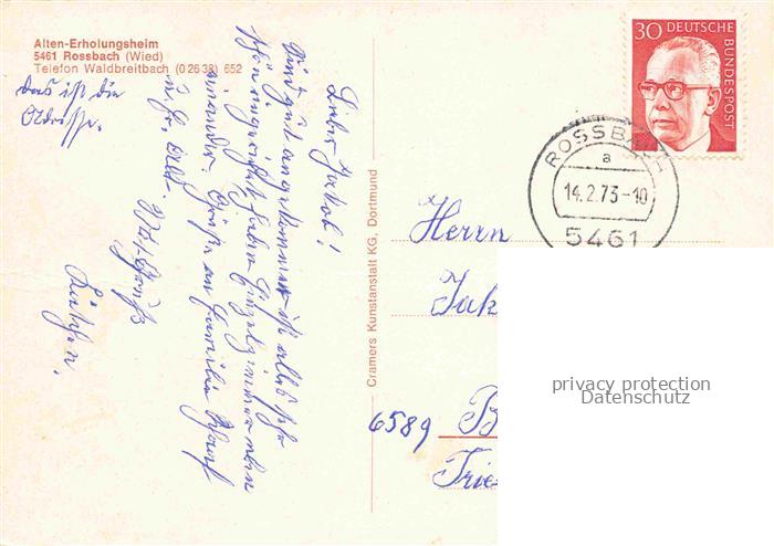 74050182 alte Postkarte Rossbach Wied Alten Erholungsheim postalisch gelaufen Erhaltung siehe scans [WerneD78] KatCode: 11110007138065