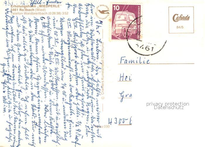 73711829 alte Postkarte Rossbach Wied Erholungsheim Wiedperle Gastraeume Hauskapelle postalisch gelaufen Erhaltung siehe scans [WerneD78] KatCode: 11110007138065