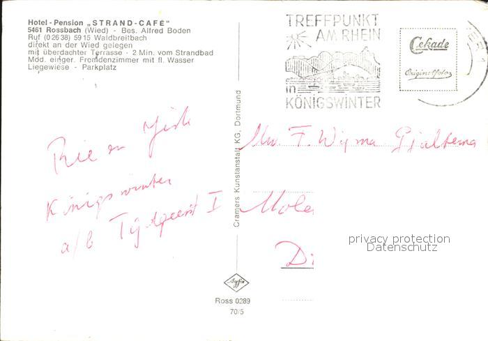 72465266 alte Postkarte Rossbach Wied Hotel Pension Strand Cafe postalisch gelaufen Erhaltung siehe scans KatCode: 11110007138065
