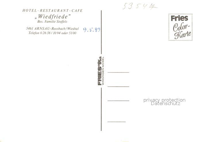 73324911 Rossbach Wied Hotel Restaurant Wiedfriede postalisch nicht gelaufen Erhaltung siehe scans [FriedD77] KatCode: 11110007138065