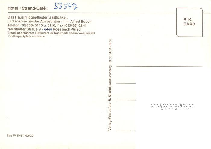 73608988 Rossbach Wied Hotel Strand Cafe postalisch nicht gelaufen Erhaltung siehe scans [WerneD78] KatCode: 11110007138065