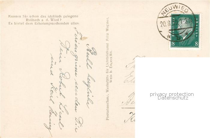 73821691 alte Postkarte Rossbach Wied Partie an der Wied mit Bruecke postalisch gelaufen Erhaltung siehe scans [WerneD78] KatCode: 11110007138065
