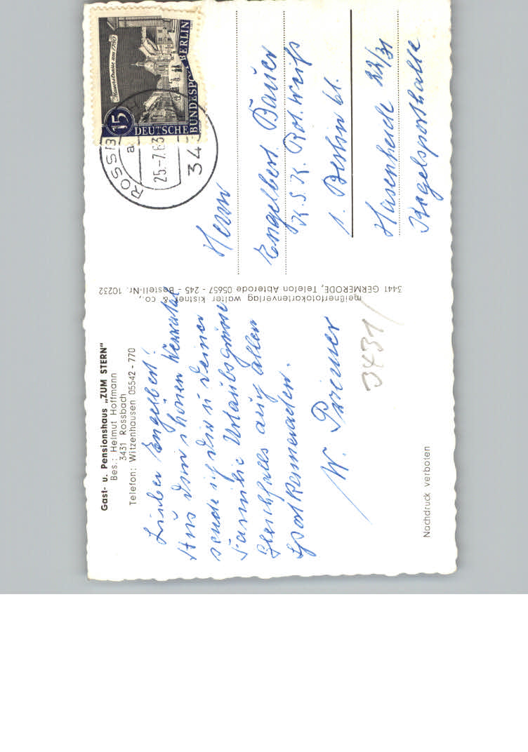 31130072 Rossbach Witzenhausen Gasthaus Pension Zum Stern postalisch nicht gelaufen KatCode: 11110006636016