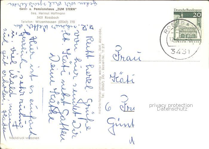 72445851 alte Postkarte Rossbach Witzenhausen Panorama Gast und Pensionshaus Zum Stern Gastraum postalisch gelaufen Erhaltung siehe scans KatCode: 11110006636016