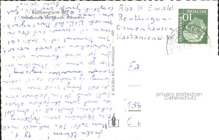 72273443 alte Postkarte Rossberg Wolfegg Rossbergturm postalisch gelaufen Erhaltung siehe scans KatCode: 11110008436085