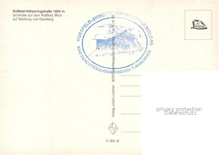 73243696 Rossfeldhuette Rossfeld Hoehenringstrasse Salzburg Gaisberg postalisch nicht gelaufen Erhaltung siehe scans [KathaD81] KatCode: 11110009172116