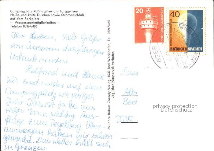 71993117 alte Postkarte Rosshaupten Forggensee Camping Kuehe postalisch gelaufen Erhaltung siehe scans KatCode: 11110009777166