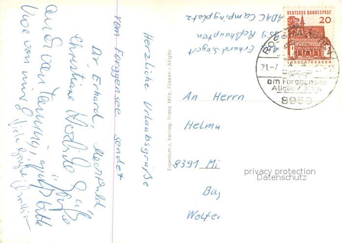 73725016 alte Postkarte Rosshaupten Forggensee Campingplatz Landschaftspanorama Alpen Schloesser Viehweide postalisch gelaufen Erhaltung siehe scans [FriedD77] KatCode: 11110009777166