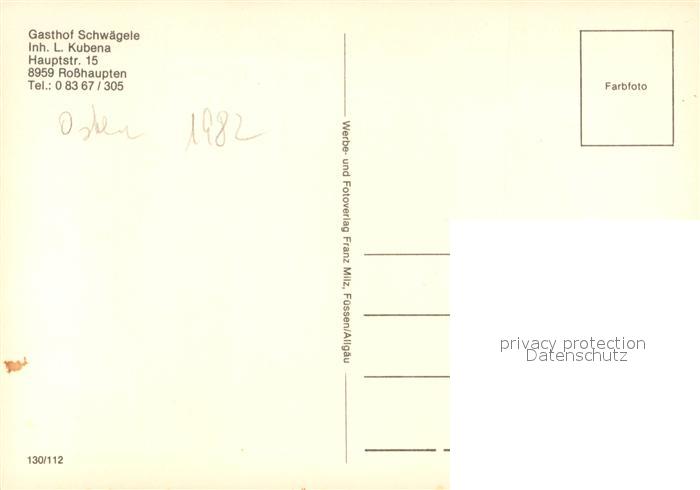 73646299 Rosshaupten Forggensee Gasthaus Schwaegele Panorama postalisch nicht gelaufen Erhaltung siehe scans [WerneD78] KatCode: 11110009777166