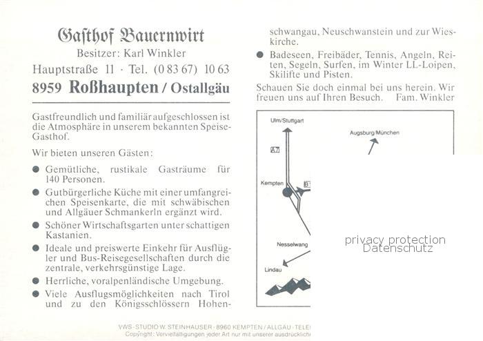 73791744 Rosshaupten Forggensee Gasthof Bauernwirt Gaststuben Garten postalisch nicht gelaufen Werbekarte (keine Postkarte) Erhaltung siehe scans [WerneD78] KatCode: 11110009777166