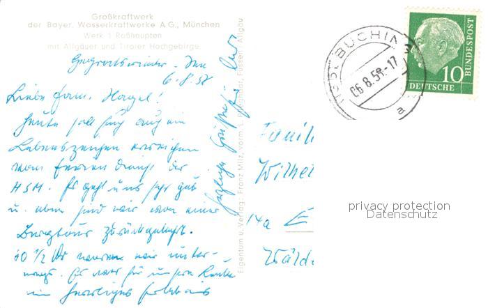 72981785 alte Postkarte Rosshaupten Forggensee Grosskraftwerk der Bayerischen Wasserkraftwerke Alpen postalisch gelaufen Erhaltung siehe scans [FriedD77] KatCode: 11110009777166