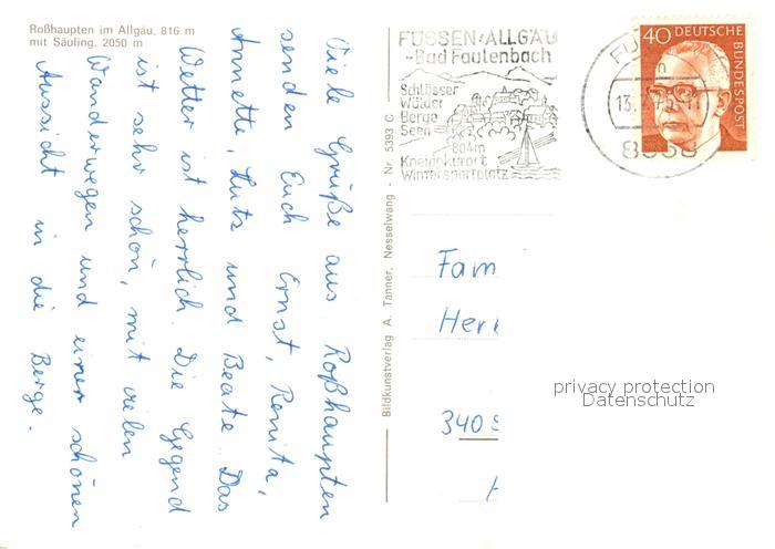 73071179 alte Postkarte Rosshaupten Forggensee Schloss Neuschwanstein Forggensee Saeuling postalisch gelaufen Erhaltung siehe scans [NatalD47] KatCode: 11110009777166