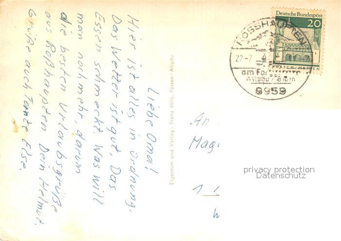 73672868 alte Postkarte Rosshaupten Forggensee Schloss Neuschwanstein Forggensee Schloss Hohenschwangau Campingplatz Panorama postalisch gelaufen Erhaltung siehe scans [WerneD78] KatCode: 11110009777166