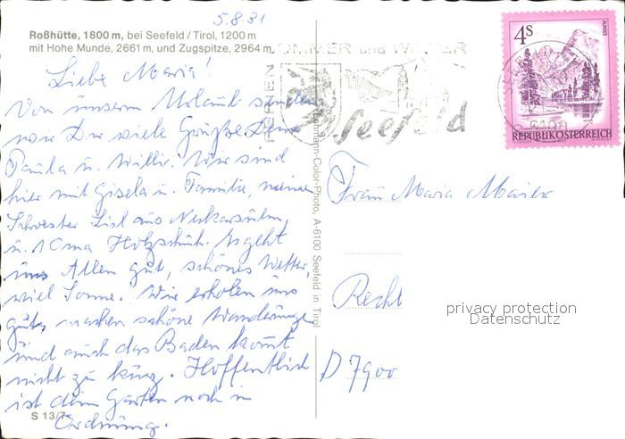 72279505 alte Postkarte Rosshuette Hohe Munde Zugspitze postalisch gelaufen Erhaltung siehe scans KatCode: 11390332070351