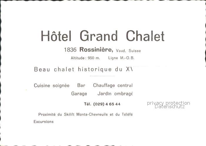 11644653 Rossiniere Hotel Grand Chalet postalisch nicht gelaufen Werbekarte (keine Postkarte) Erhaltung siehe scans KatCode: 11470240835814