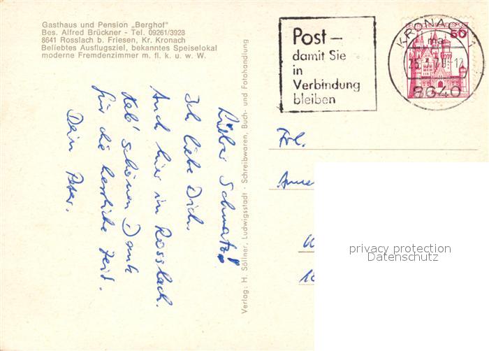 73542995 alte Postkarte Rosslach Gasthaus Pension Berghof postalisch gelaufen Erhaltung siehe scans [FriedD77] KatCode: 11110009476189