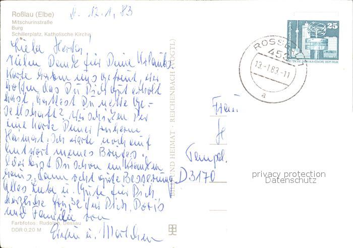72102406 alte Postkarte Rosslau Elbe Burg Schillerplatz postalisch gelaufen Erhaltung siehe scans KatCode: 11110015001000