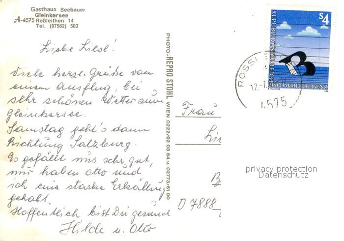 73004111 alte Postkarte Rossleithen Gasthaus Seebauer am Gleinkersee postalisch gelaufen Erhaltung siehe scans [WerneD78] KatCode: 11390314040915