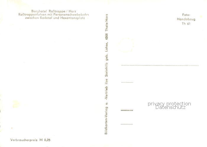 73757053 Rosstrappe Harz Berghotel Rosstrappe Rosstrappenfelsen mit Personenschwebebahn zwischen Bodetal und Hexentanzplatz postalisch nicht gelaufen Erhaltung siehe scans [WerneD78] KatCode: 11110015085145