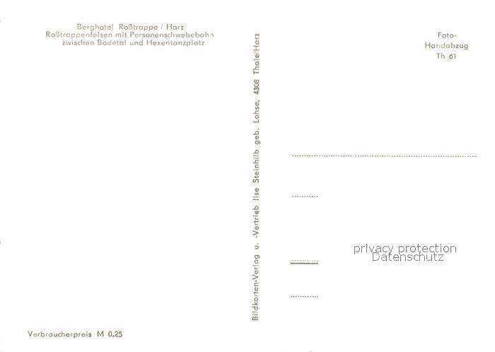 73723103 Rosstrappe Harz Berghotel Rosstrappe Rosstrappenfelsen mit Personenschwebebahn postalisch nicht gelaufen Erhaltung siehe scans [WerneD78] KatCode: 11110015085145