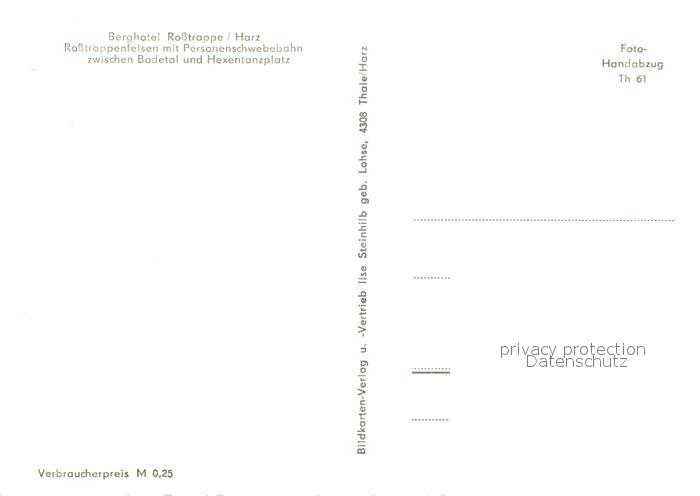 72982842 Rosstrappe Harz Region Berghotel Rosstrappe Rosstrappenfelsen mit Personenschwebebahn postalisch nicht gelaufen Erhaltung siehe scans [WerneD78] KatCode: 11110015085145