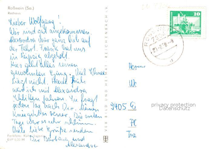 73124226 alte Postkarte Rosswein Rathaus postalisch gelaufen Erhaltung siehe scans [LiesaD40] KatCode: 11110014375160