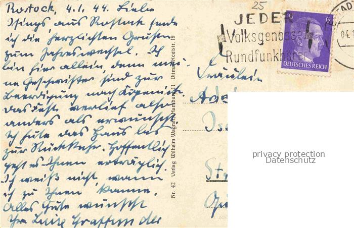 74029917 alte Postkarte ROSTOCK CITY Am Rosengarten postalisch gelaufen Erhaltung siehe scans [FriedD77] KatCode: 11110013003000
