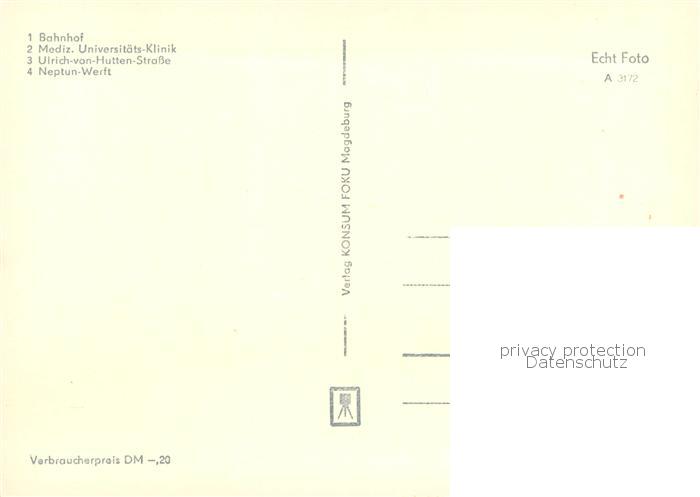 73751050 ROSTOCK CITY Bahnhof Med Universitaets Klinik Ulrich von Hutten Strasse Neptunwerft postalisch nicht gelaufen Erhaltung siehe scans [WerneD78] Wern Katcode 11110013003000