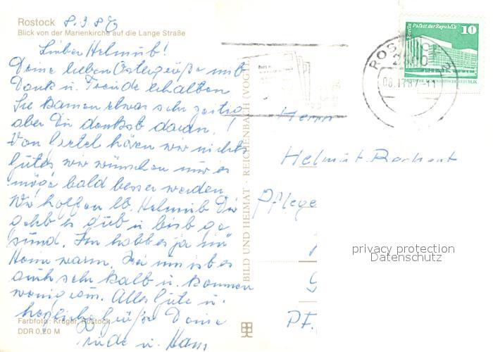 73104947 alte Postkarte ROSTOCK CITY Blick von der Marienkirche auf die Lange Strasse postalisch gelaufen Erhaltung siehe scans [WerneD78] KatCode: 11110013003000