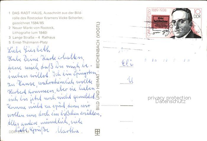 72335812 alte Postkarte ROSTOCK CITY Das Radt Haus Neuer Markt Lange Str Rathaus Ernst Thaelmann Platz postalisch gelaufen Erhaltung siehe scans KatCode: 11110013003000
