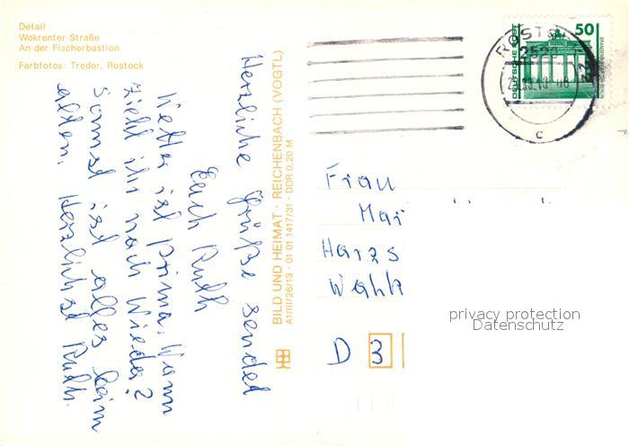 73066530 alte Postkarte ROSTOCK CITY Detail Wokrenter Strasse An der Fischerbastion postalisch gelaufen Erhaltung siehe scans [WerneD78] KatCode: 11110013003000