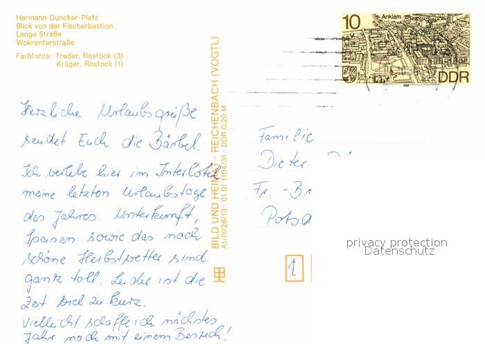 72884234 alte Postkarte ROSTOCK CITY Duncker Platz Fischerbastion Lange Strasse Wokrenterstrasse postalisch gelaufen Erhaltung siehe scans [WerneD78] KatCode: 11110013003000