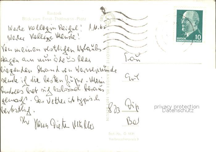 72016867 alte Postkarte ROSTOCK CITY Ernst Thaelmann Platz postalisch gelaufen Erhaltung siehe scans KatCode: 11110013003000