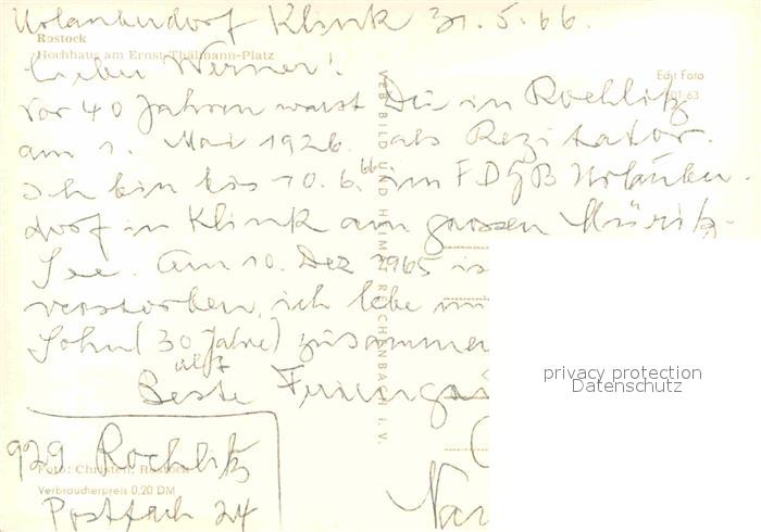 72642625 ROSTOCK CITY Ernst Thaelmann Platz Hochhaus postalisch nicht gelaufen Erhaltung siehe scans [WerneD78] KatCode: 11110013003000