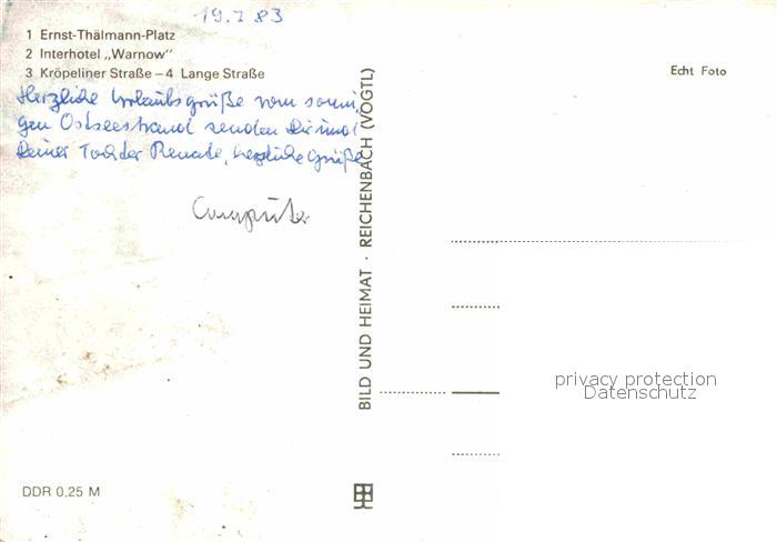 72703198 ROSTOCK CITY Ernst Thaelmann Platz Interhotel Warnow Kroepeliner Strasse postalisch nicht gelaufen Erhaltung siehe scans [AndreD76] KatCode: 11110013003000