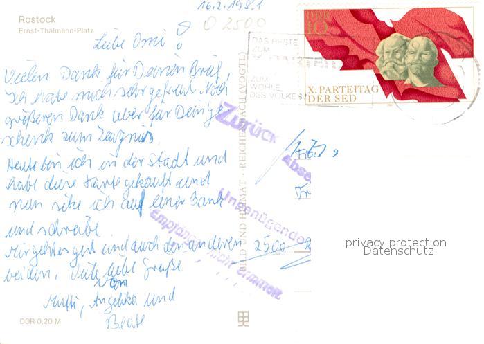 72961026 alte Postkarte ROSTOCK CITY Ernst Thaelmann Platz Kirche postalisch gelaufen Erhaltung siehe scans [FriedD77] KatCode: 11110013003000