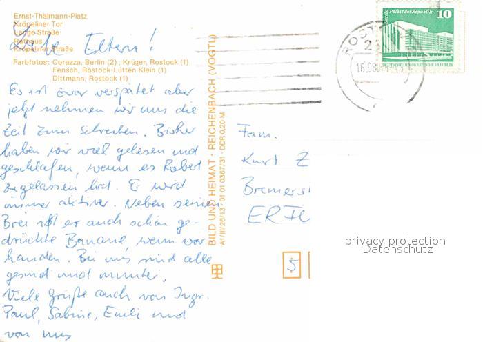 72919697 alte Postkarte ROSTOCK CITY Ernst Thaelmann Platz Kroepeliner Tor Langestrasse Rathaus Kroepeliner Strasse postalisch gelaufen Erhaltung siehe scans [FriedD77] KatCode: 11110013003000