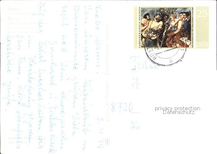 72261747 alte Postkarte ROSTOCK CITY Ernst Thaelmann Platz Nachtaufnahme postalisch gelaufen Erhaltung siehe scans KatCode: 11110013003000