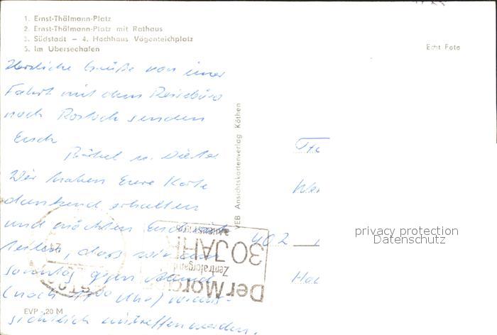 72330671 alte Postkarte ROSTOCK CITY Ernst Thaelmann Platz Rathaus Suedstadt Hochhaus Voegenteichplatz ueberseehafen postalisch gelaufen Erhaltung siehe scans KatCode: 11110013003000