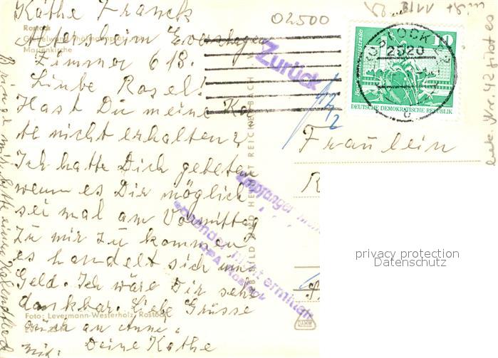 72941123 alte Postkarte ROSTOCK CITY Giebelwand Thaelmannplatz Marienkirche postalisch gelaufen Erhaltung siehe scans [NatalD47] KatCode: 11110013003000