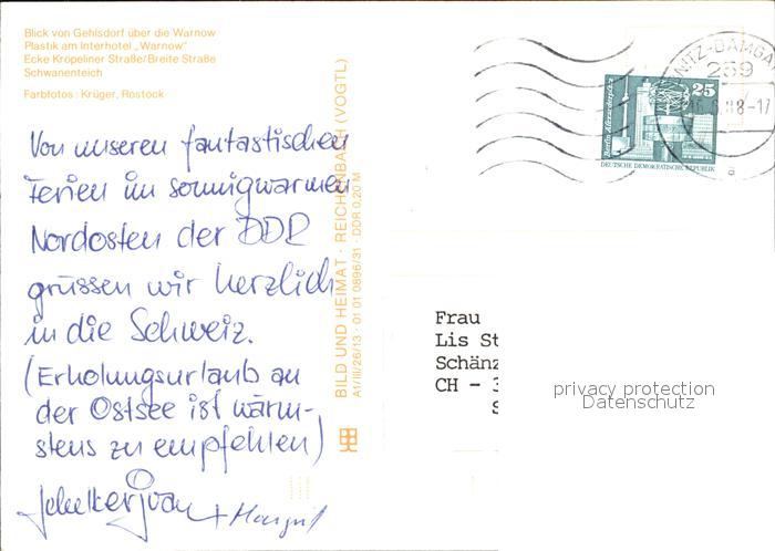 72590393 alte Postkarte ROSTOCK CITY Hafen Gehlsdorf Warnow Interhotel-Warnow Breite- und Kroepelinerstrasse postalisch gelaufen Erhaltung siehe scans [LiesaD40] KatCode: 11110013003000