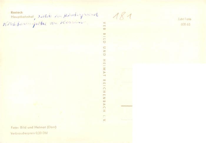 73871305 ROSTOCK CITY Hauptbahnhof postalisch nicht gelaufen Erhaltung siehe scans [FriedD77] Frie Katcode 11110013003000